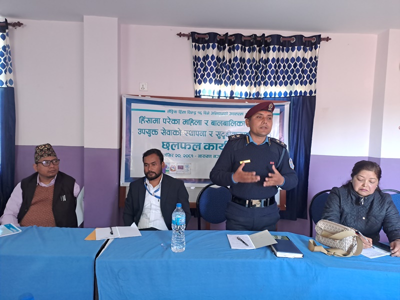 लैंगिक हिंसा विरुद्धको १६ दिने अभियानकै अवसरमा आयोजना गरिएको उक्त कार्यक्रममा श्रेस्तेदार उपसचिव मल्लले अदालत र अर्धन्यायिक निकायहरु समेतले पीडितहरु मध्ये पनि महिलाहरुको न्यायमा सवालमा सम्वेदनशील रहेको तर न्याय पाउन पीडितहरुले प्रमाण संकलन तथा न्याय प्रक्रियामा सघाउने र धैर्यता जरुरी रहेको बताउनुभयो ।