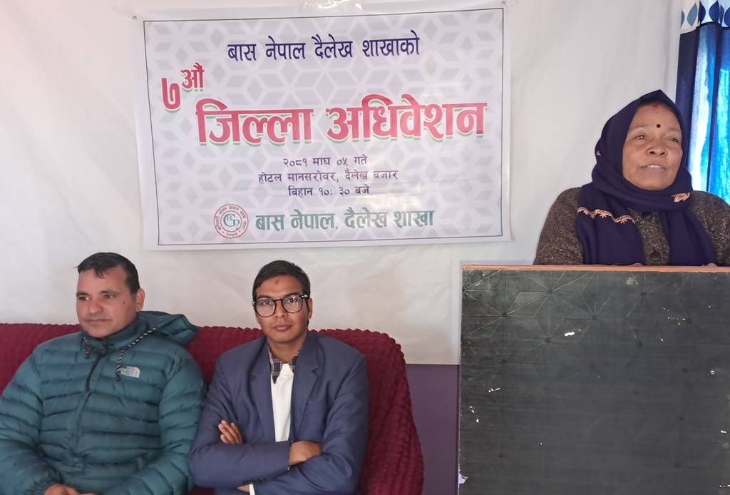 दैलेख – सुशासन र पारदर्शिताको सवालमा पैरवी गर्दै आएको बागेश्वरी असल शासन (बास) नेपाल दैलेख शाखाको शनिबार सम्पन्न सातौं जिल्ला अधिवेशनले ११ सदस्यीय नयाँ कार्यसमिति निर्विरोध चयन गरेको छ । समितिको अध्यक्ष कृष्णकमल अधिकारी, उपाध्यक्षमा गीताकुमारी खत्री, सचिव ललित थापा, सहसचिव जंग बोगटी र कोषाध्यक्ष पदमा प्रकाश विक्रम शाही चयन हुनुभएको छ । सदस्यहरूमा संगिता शाही, सुशील कार्की, गणेश प्रसाद शर्मा, सुहाना घर्तीमगर, गोबिन्द प्रसाद रेग्मी र हेमराज न्यौपाने चुनिनुभएको छ ।