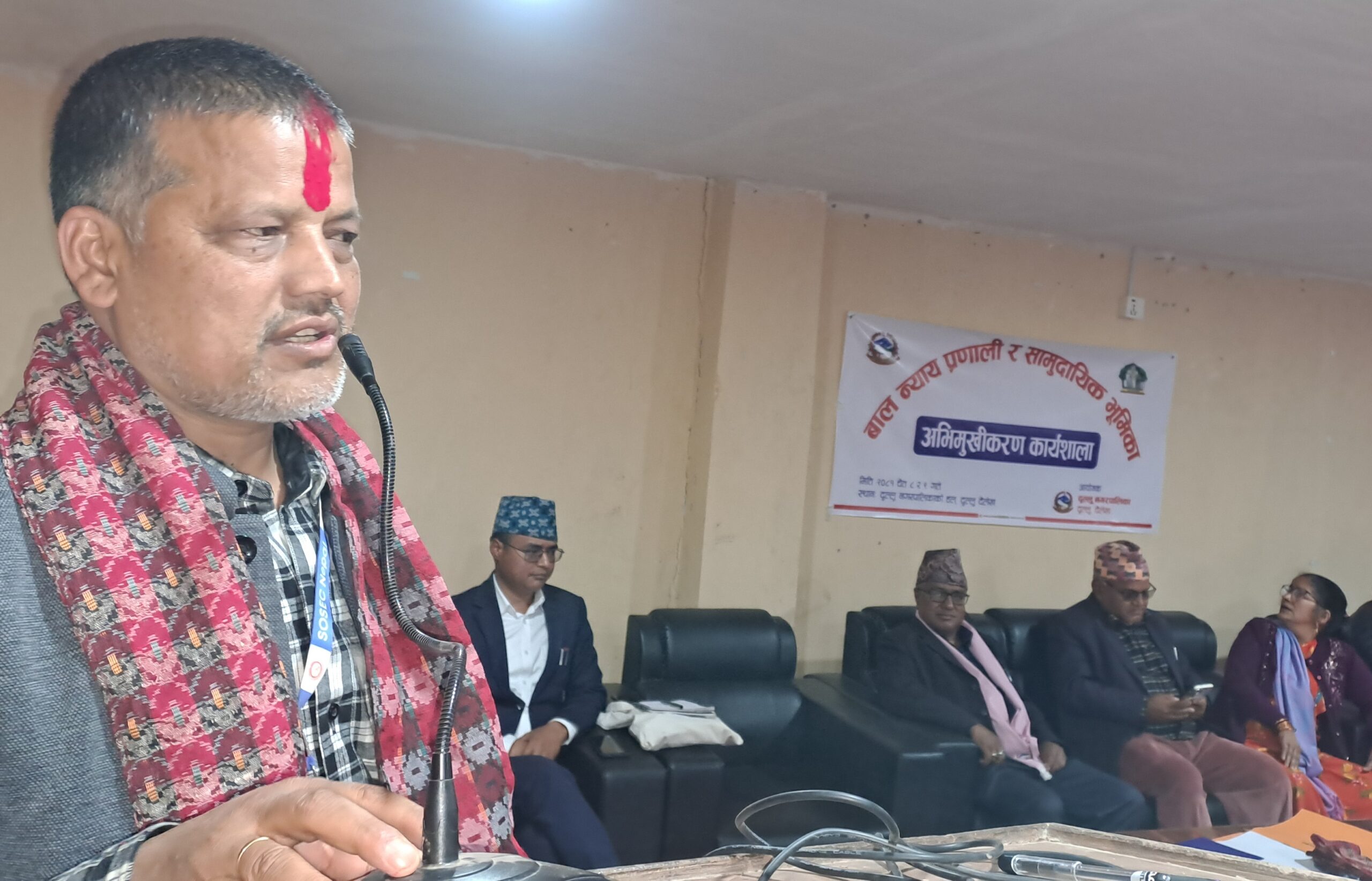 कार्यशालामा जिल्ला न्यायाधीश कुलप्रसाद पाण्डे, बाल मनोविज्ञ पत्रकार अमर सुनार, दैलेख जिल्ला अदालतका बैतनिक वकील हरि खत्री, जिल्ला सरकारी वकील कार्यालय दैलेखका सहायक जिल्ला न्यायाधिवक्ता धर्मराज न्यौपानेले सहजीकरण गर्नुभएको थियो ।