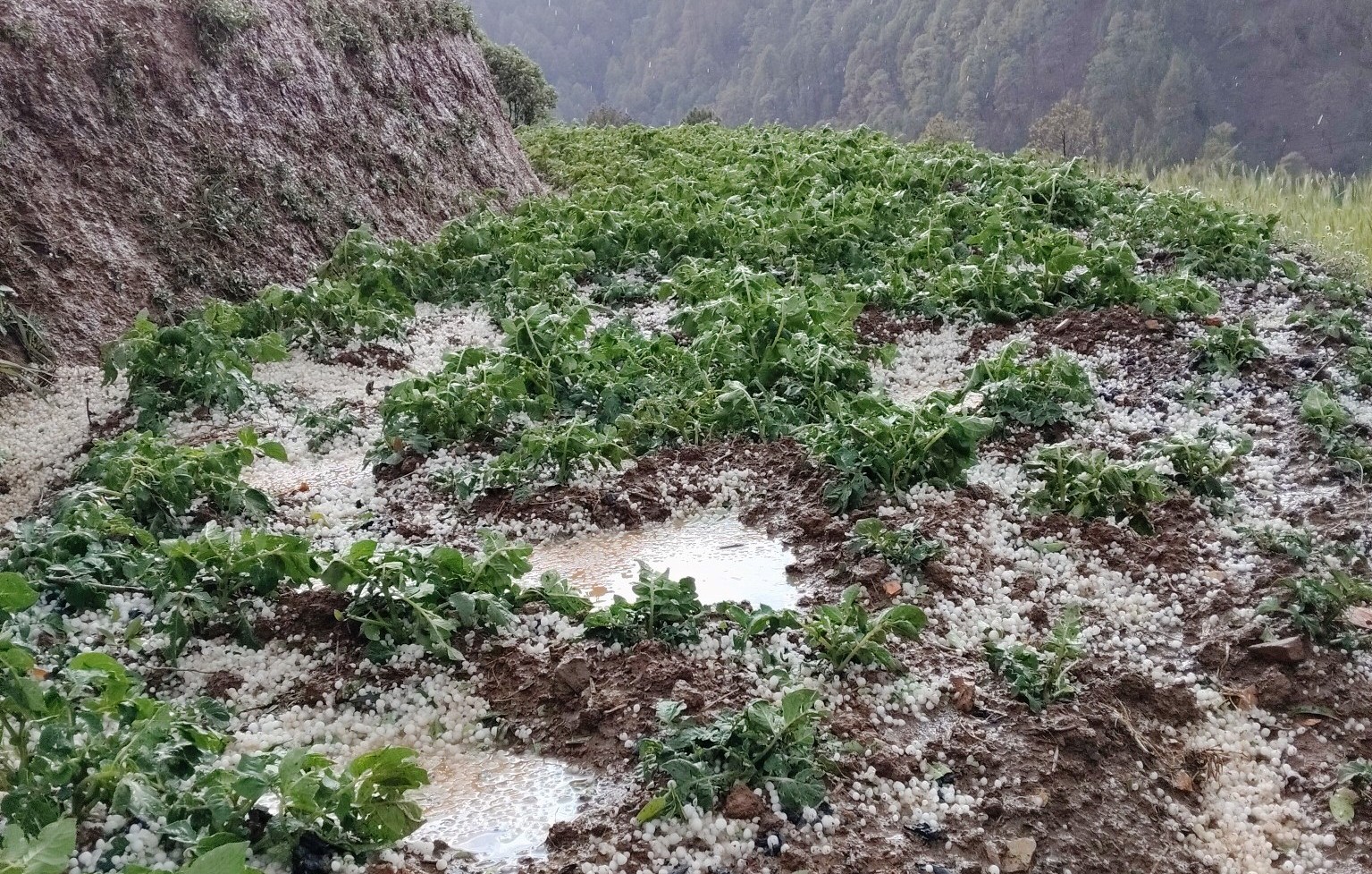 गएको माघमा लगाएको काँक्रा ठिक्क फल लागेको बेला ठूलो असिना–पानी परेकोले पूरै नोक्सानी भएको गोदारले सुनाउनुभयो । असिनाले काँक्रा लगाएको क्यारीमा २५ माइक्रोनको प्लाष्टिक छियाछिया पारेर प्वाल पारेको र जमिन रहेका काँक्रा र टमाटरको फलसंगै बिरुवालाई थिलोथिलो पारेको छ ।