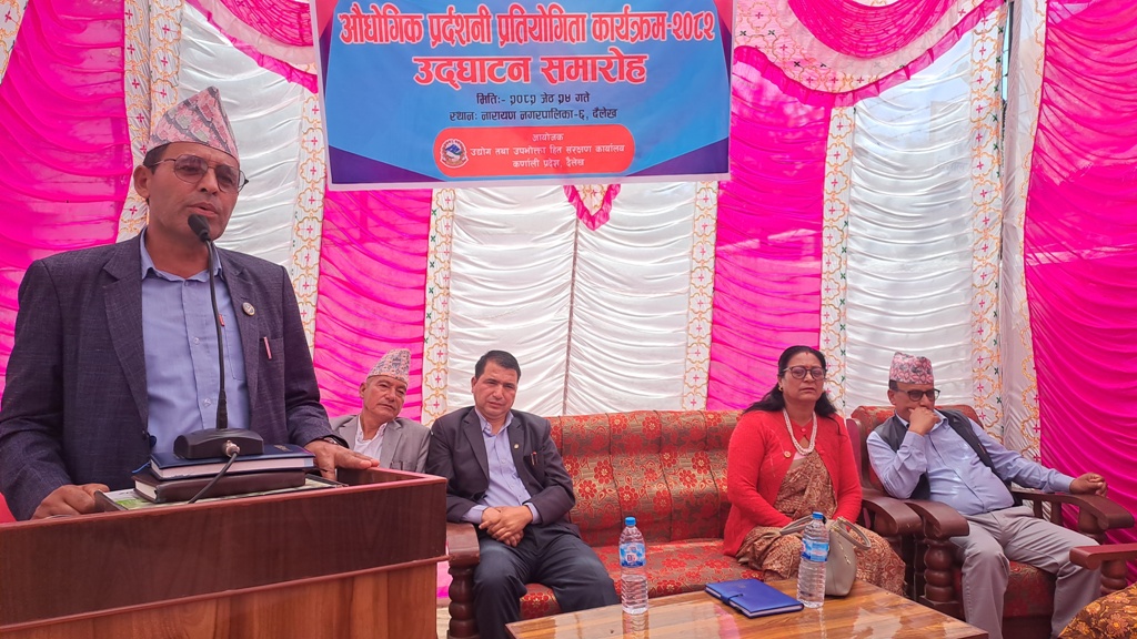 औधोगिक प्रदर्शनी उद्घाटन कार्यक्रममा नेपाल पत्रकार महासंघका जिल्ला अध्यक्ष अमर सुनार, दैलेख उद्योग बाणिज्य संघका अध्यक्ष नरेन्द्र थापा, गैसस महासंघका जिल्ला अध्यक्ष दिलकुमारी चन्द र उद्योग तथा उपभोक्ता हित संरक्षण कार्यालयका शाखा अधिकृत पर्शुराम आचार्यले प्रदर्शनीको महत्व बारे बोल्नुभएको थियो ।
