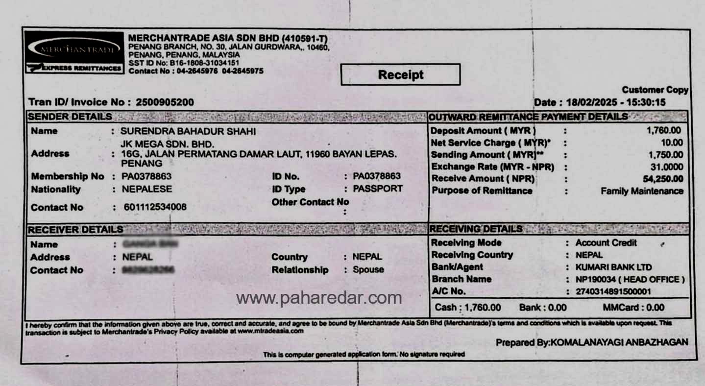 मलेसिया पुगेदेखि नियमित खर्च पठाउने गरेकी श्रीमती परपुरुषसंग विवाह गरी गएको घटनापछि सुरेन्द्रले कम्पनी राम्रो नपरेको भनी घरमा रकम पठाउन छोडेका विषयमा थोरतिन बचाई राखेको होला भनेका थियौं, अर्को केटीलाई पठाउने गरेको नेपाल फर्किएपछि मात्र सुरेन्द्रले भनेको बुबा बखत बताउनुभयो ।