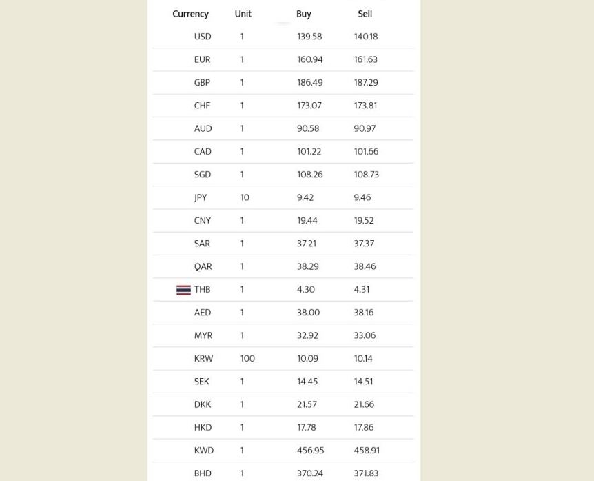 यसैगरी युरोपियन यूरो खरिद १६० रुपियाँ ९४ पैंसा र बिक्री दर १६१ रुपियाँ ६३ पैंसा कायम गरेको नेपाल राष्ट्र बैंकले तोकेको विनिमय दरमा जनाइएको छ । भारतीय एक सय रुपियाँ खरिद दर १६० रुपियाँ र बिक्री दर १६० रुपियाँ १५ पैंसा रहेको नेपाल राष्ट्र बैंकको विनिमय दर जनाएको छ ।