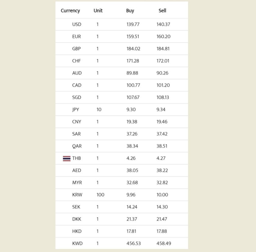 यसैगरी युरोपियन यूरो खरिद १५९ रुपियाँ ५१ पैंसा र बिक्री दर १६० रुपियाँ २० पैंसा कायम गरेको नेपाल राष्ट्र बैंकले तोकेको विनिमय दरमा जनाइएको छ । भारतीय एक सय रुपियाँ खरिद दर १६० रुपियाँ र बिक्री दर १६० रुपियाँ १५ पैंसा रहेको नेपाल राष्ट्र बैंकको विनिमय दर जनाएको छ ।