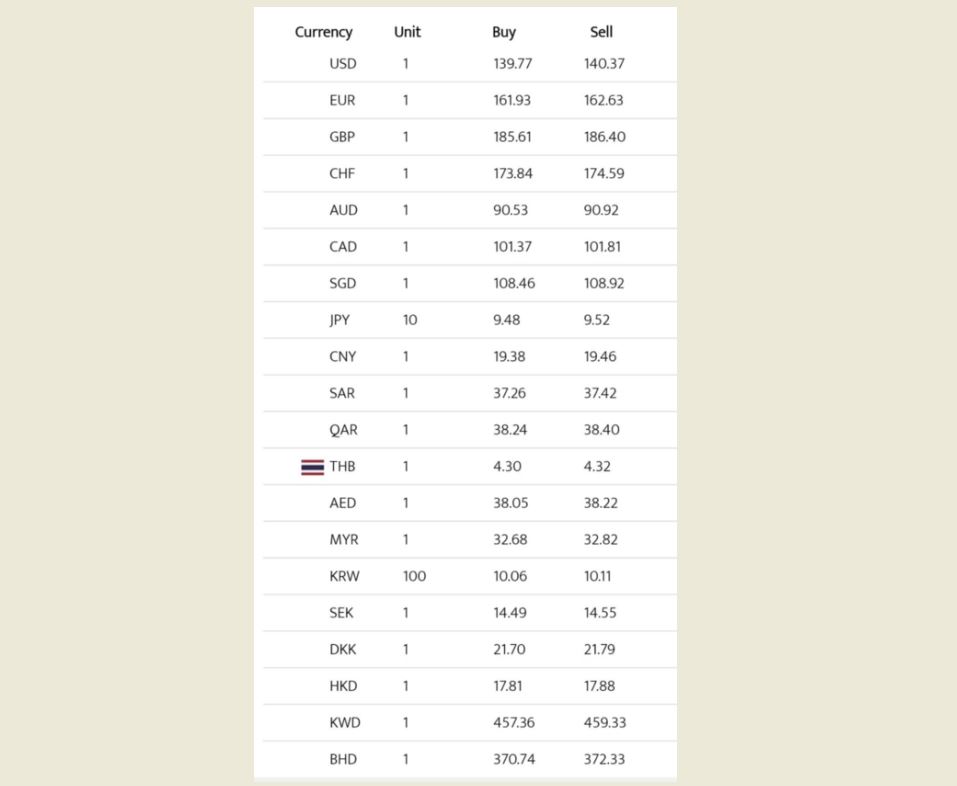 नेपाल राष्ट्र बैंकका अनुसार साउदी अरब रियल खरिद दर ३७ रुपियाँ २६ पैंसा र बिक्री दर ३७ रुपियाँ ४२ पैंसा, कतारको रियल खरिद ३८ रुपियाँ ३४ पैंसा र बिक्री दर ३८ रुपियाँ ४० पैंसा अनि कुबेती दिनार खरिद दर ४५७ रुपियाँ ३६ पैंसा र बिक्री दर ४५९ रुपियाँ ३३ पैंसा विनिमय दर तोकिएको छ ।