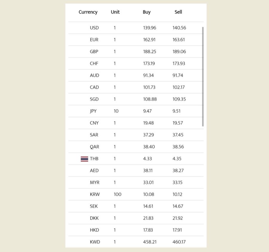 आजको लागि नेपाल राष्ट्र बैंकले साउदी अरब रियल खरिद दर ३७ रुपियाँ २९ पैंसा र बिक्री दर ३७ रुपियाँ ४५ पैंसा, कतारको रियल खरिद ३८ रुपियाँ ४० पैंसा र बिक्री दर ३८ रुपियाँ ५६ पैंसा अनि कुबेती दिनार खरिद दर ४५८ रुपियाँ २१ पैंसा र बिक्री दर ४६० रुपियाँ १७ पैंसा तोकेको छ ।
