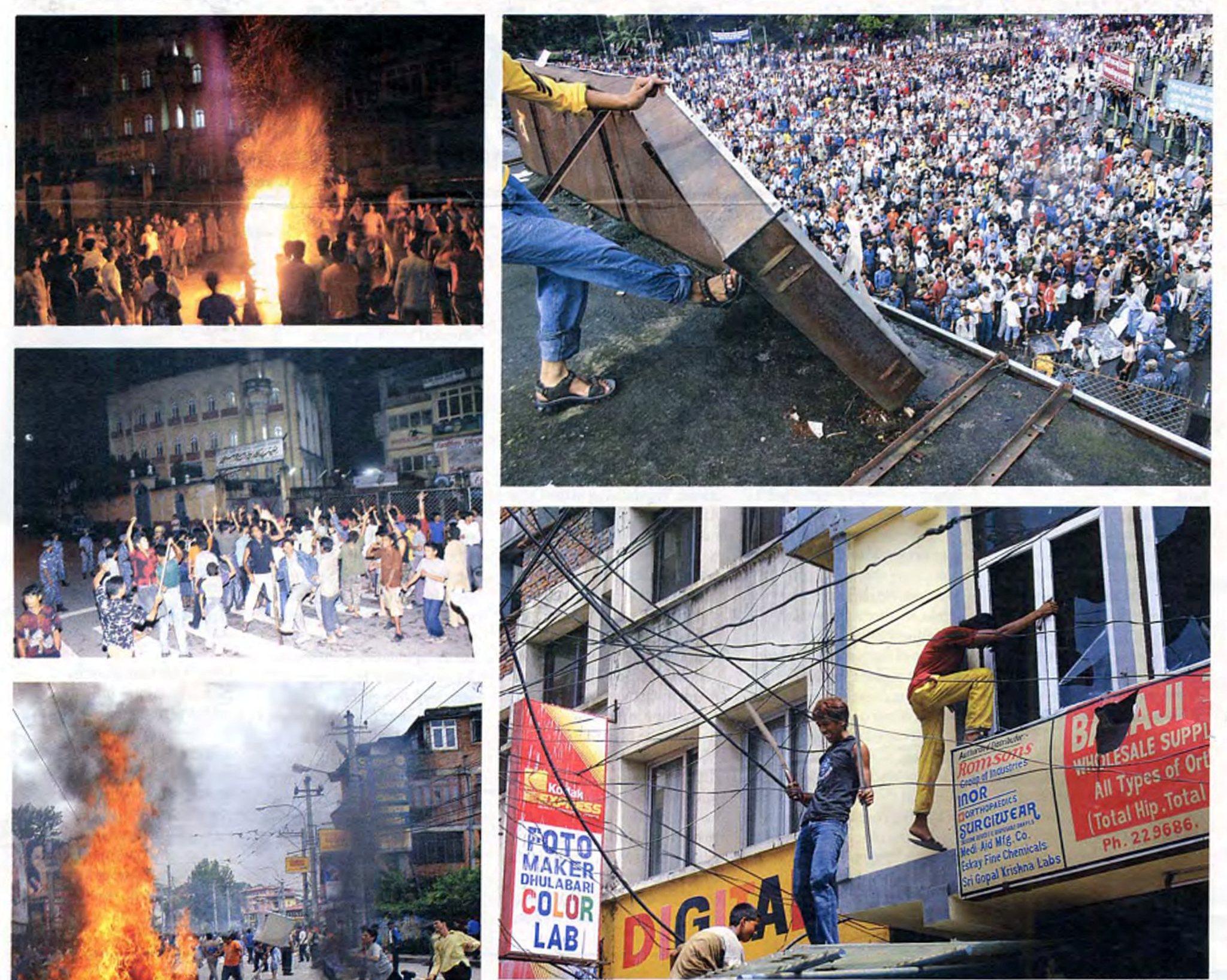 मेनपावर, मिडिया र मस्जिद मुख्य निसानामा पारेकोले ‘तीन म’ नाम दिएका थिए । आक्रमणकारीहरुले तीनकुनेमा कान्तिपुर र शान्तिनगरस्थित स्पेसटाइम्सका कार्यालयमा आक्रमण भयो । आक्रमणकारीले आगजनी, तोडफोड र लुटपात हुन थालेपछि सरकारले कफ्र्यू लगाएर सेना परिचालन गरेपछि मात्र नियन्त्रणमा आएको थियो ।