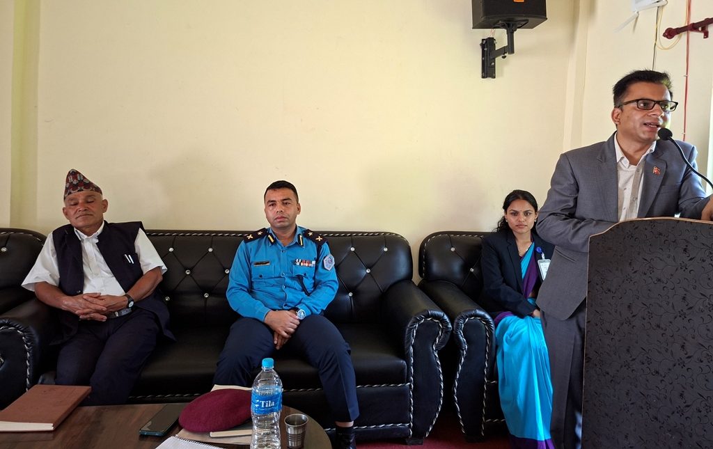 उहाँले विपदको बेला समयमा सूचना पाउदा सुरक्षा निकायले उद्धार र पुनस्र्थापना गराउन सहज हुने, शान्ति सुरक्षा र अपराध घटना सूचना समयमा पाए दोषीलाई कानूनी कारवाहीमा सहज हुने, दशैंतिहारमा मदिरा नियन्त्रण गर्ने र सवारी व्यवस्थापनमा सरकारी निकायले गर्ने काममा नागरिकहरुसंग प्रमुख जिल्ला अधिकारी बद्रीनाथ गैह्रेले सहयोगको निम्ति आग्रह गर्नुभयो ।