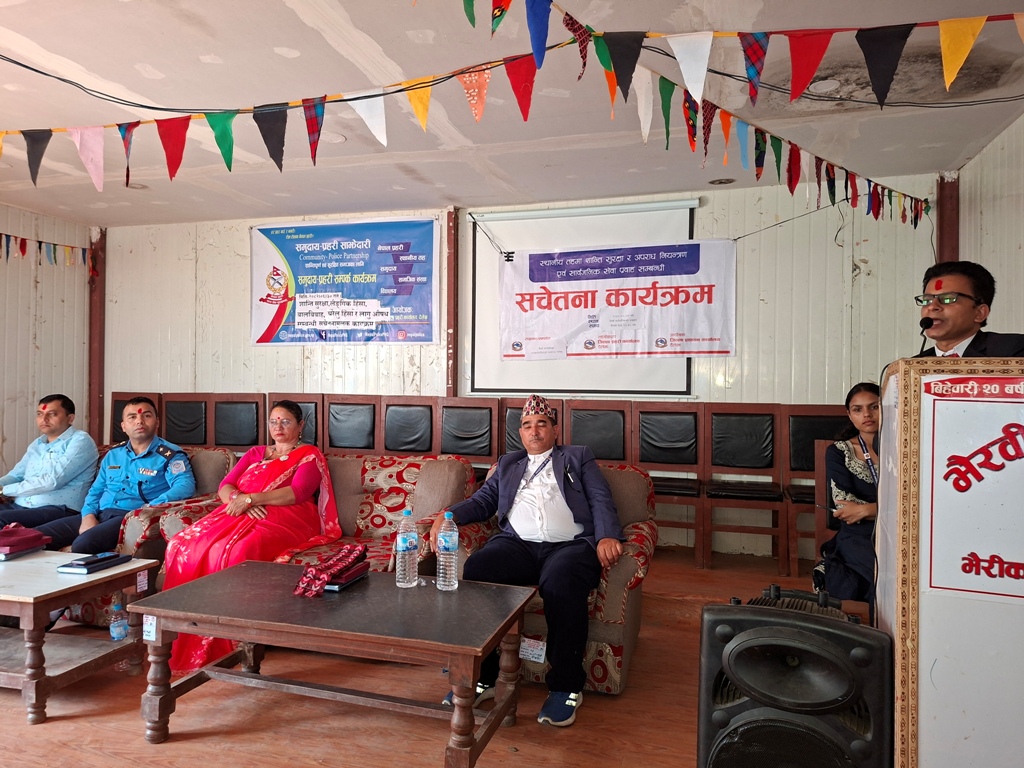 कार्यक्रममा जिल्ला प्रहरी कार्यालय दैलेखका इञ्चार्ज डीएसपी गणेशबहादुर बरालले भैरबी गाउँपालिकाका क्षेत्रमा लैंगिक हिंसा समस्या रहेको, राजमार्गसंग जोडिएको कारण सवारी दुर्घटना, लागु औषध दुव्र्यसनी रोकथाममा स्थानीय सरकार, समुदायका अगुवाहरुको सहयोग चाहिएको बताउनुभयो ।