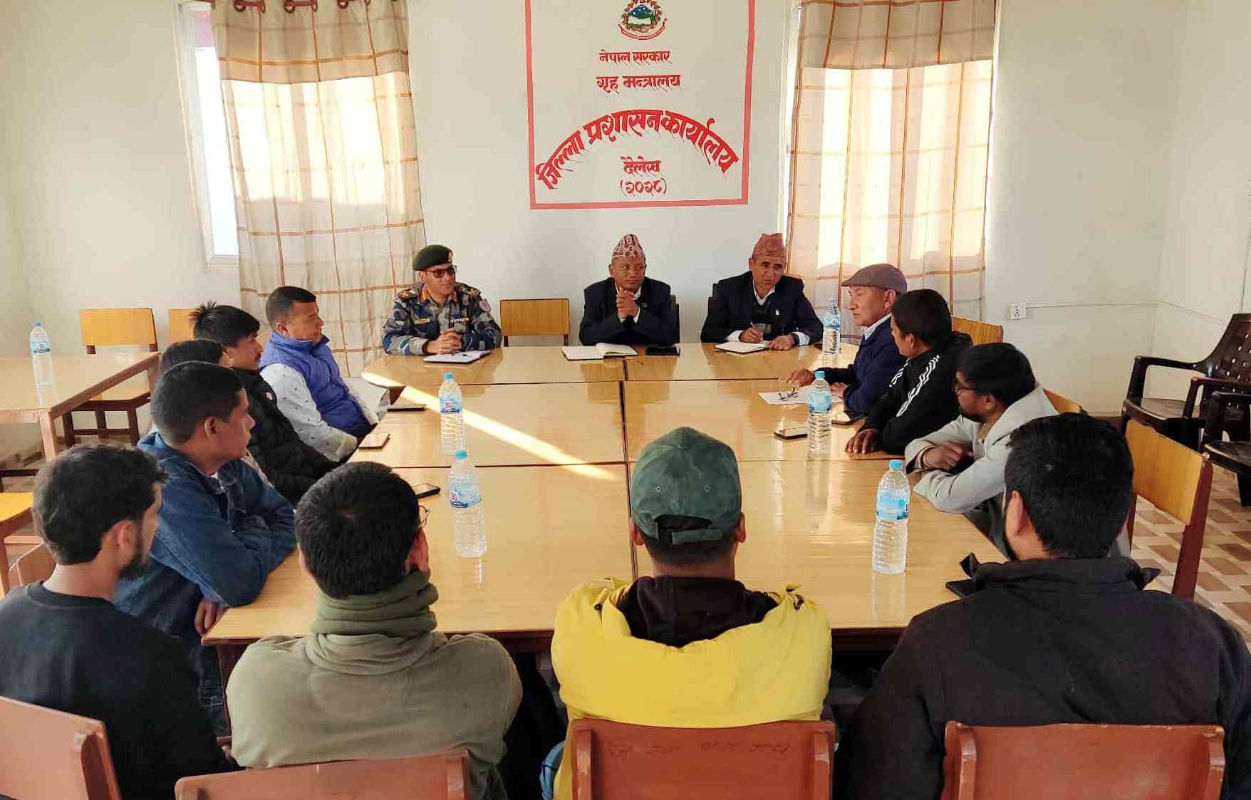 सशस्त्र प्रहरी नायव उपरीक्षक मीनराज भट्ट, जिल्ला प्रशासन कार्यालयका प्रशासकीय अधिकृत गणेशविक्रम शाह समेत उपस्थित पत्रकार भेटघाट कार्यक्रममा नेपाल पत्रकार महासंघ जिल्ला शाखा दैलेखका अध्यक्ष अमर सुनार लगायत विभिन्न मिडियामा कार्यरत पत्रकारहरुले जिल्लाको विकास र शान्ति सुरक्षा प्रवद्र्धनमा सहकार्यता रहने वचन दिनुभएको थियो ।