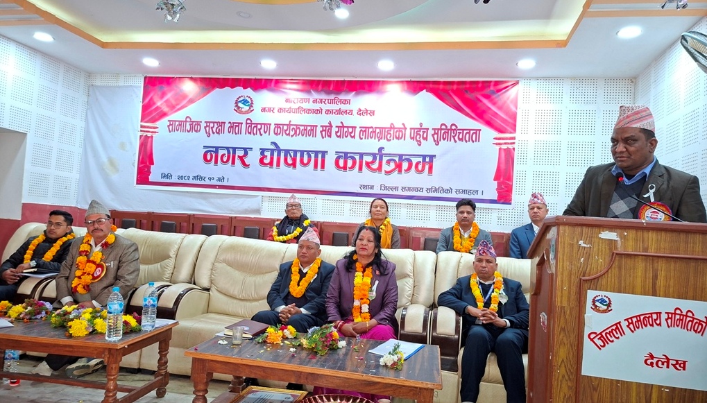 नारायण नगरपालिकाका मेयर लोमन शर्माको अध्यक्षतामा भएको कार्यक्रममा उपमेयर तप्ताकुमारी थापा, प्रमुख प्रशासकीय अधिकृत बमबहादुर केसी, एभरेष्ट क्लवका कार्यकारी निर्देशक दिपक शाहीले सामाजिक सुरक्षा भत्ता पहुँच सुनिश्चितता घोषणा महत्व र यसको निरन्तरता गरिएको लगाव विषयमा प्रकाश पानुभएको थियो । सेभ द चिल्ड्रेनको साझेदारीमा एभरेष्ट क्लव दैलेखद्वारा सञ्चालित ‘पहुँच परियोजना’काे प्राविधिक र सहजीकरण सहयाेगमा नारायण नगरपालिकाले आफ्नो नीति, श्रोत र सक्रियतामा सामाजिक सुरक्षा भत्ता पहुँच सुनिश्चितता नगरपालिका घोषणा गरेको हो ।
