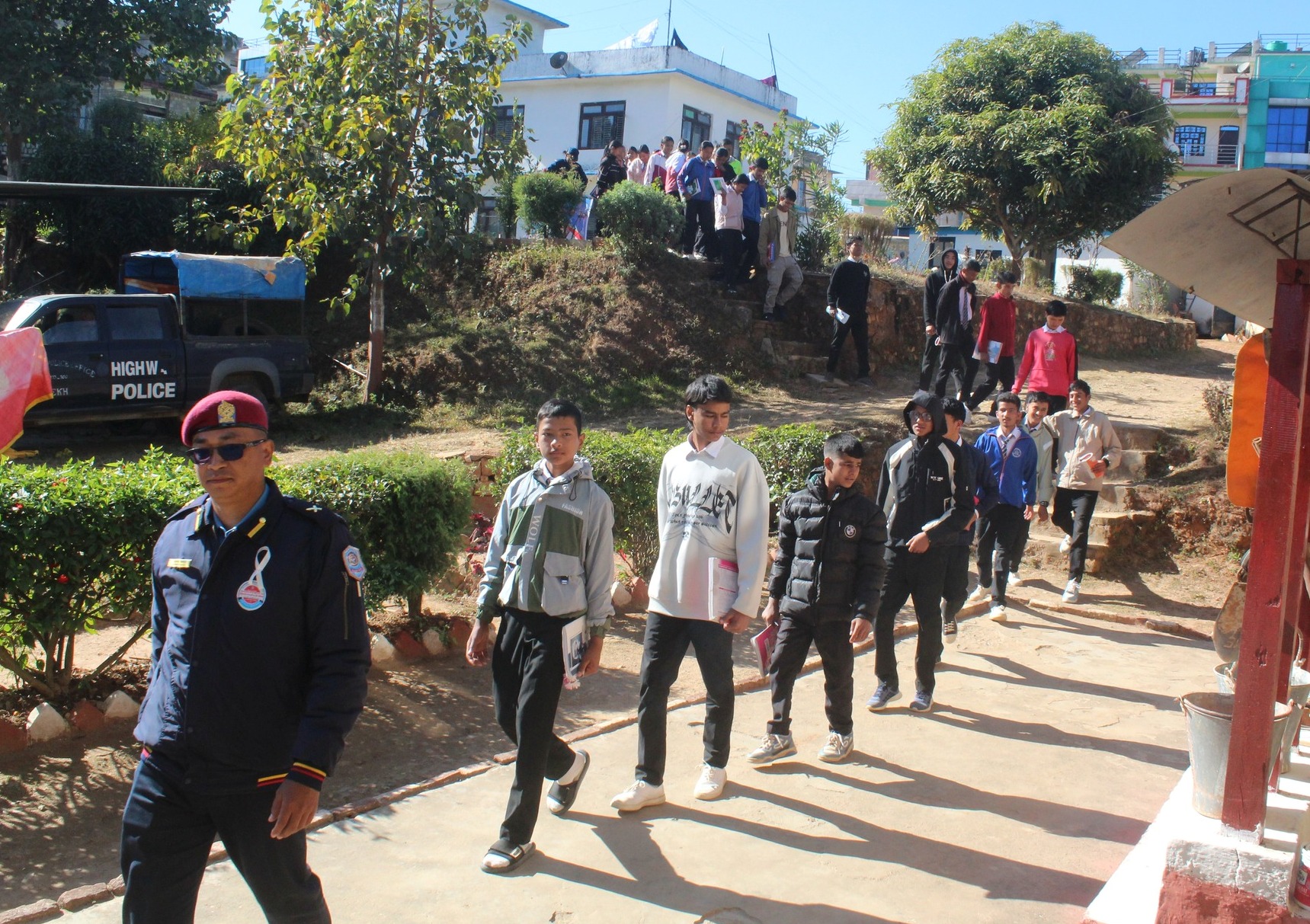 कक्षा ११ को नेपाली विषयमा अपराध रोकथाम र सामाजिक दायित्व विषयलाई प्रयोगात्मक अभ्यास अन्तरगत जिल्ला प्रहरी कार्यालय दैलेखमा अवलोकन गराइएको विद्यालयका शिक्षक भक्तबहादुर थापाले बताउनुभयो । सैद्धान्तिक व्याख्या भन्दा प्रयोगात्मक अभ्यासका लागि विद्यार्थीहरुलाई त्यहाँ लिइएको उहाँले प्रष्ट्याउनुभयो ।