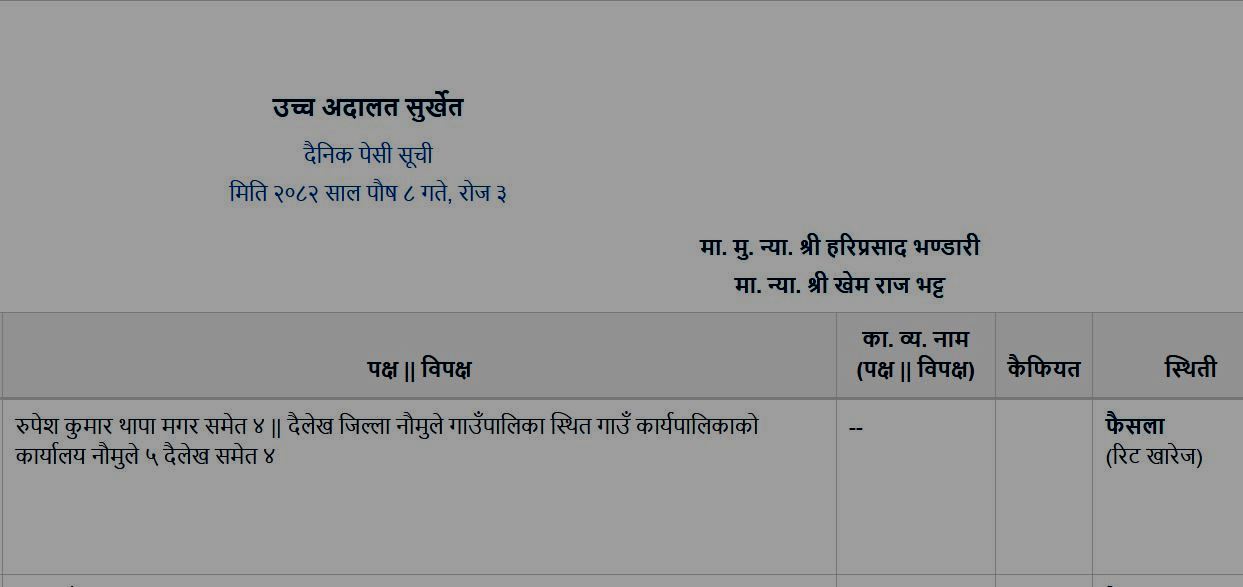 उच्च अदालत सुर्खेतका मुख्य न्यायाधीश हरिप्रसाद भण्डारी र न्यायाधीश खेमराज भट्टको संयुक्त इजलासबाट गाउँपालिकाले गजमालीमा प्रशासकीय भवन निर्माण प्रक्रिया अगाडि बढाएको नियम संगत भएकै देखियो धाइरेघारीमा प्रशासकीय भवन बनाउन परमादेश गरिरहन पर्ने नदेखिएकोले रिट खारेज भएको उच्च अदालतका सूचना अधिकारी उपरजिष्ट्ररार प्रेमप्रकाश थापाले जानकारी दिनुभयो ।