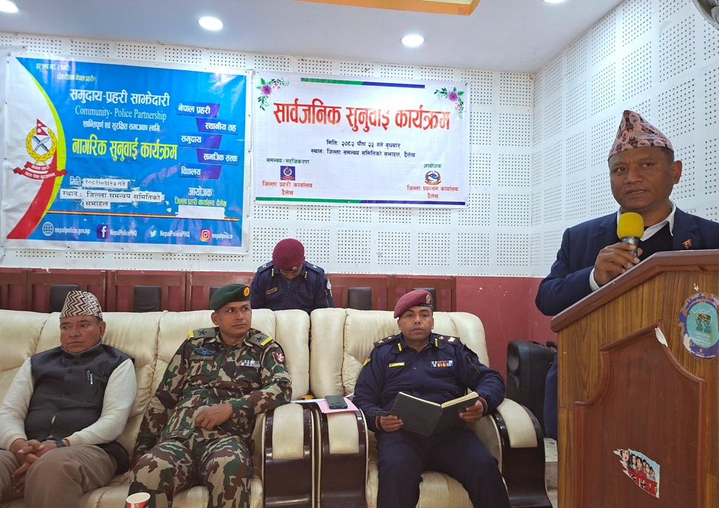 दैलेख – पञ्चकोशी अपाङ विकास मञ्चका अध्यक्ष कमल खड्काले सरकारी संरचना निर्माण गर्दा अपाङमैत्री नहुँदा अपाङगता भएका सेवाग्राहीहरुलाई असुविधा भएको समस्या सुनाउनुभयो । पत्रकार केशव पौडेलले प्रशासनले सार्वजनिक यातायात भाडादर कायम नगराएको कारण यात्रुहरुलाई मर्का परेको विषय उठाउनुभयो । जिल्ला प्रशासन कार्यालय र जिल्ला प्रहरी कार्यालयले दैलेख सदरमुकाममा आयोजना गरेको सार्वजनिक सुनुवाइ कार्यक्रममा समस्या दर्शाउनुभएको हो ।