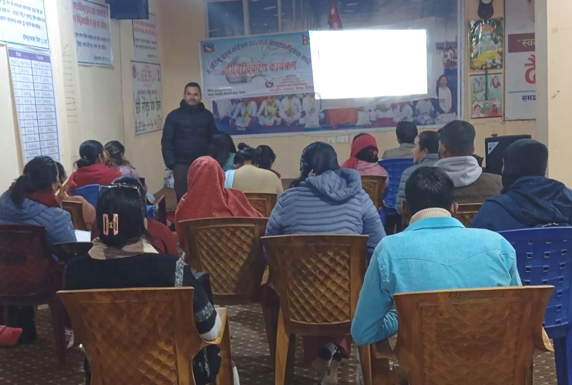 दैलेखमा पहिलो पटक खुवाउन लागिएको स्वर्णविन्दू बालबालिकाको स्वास्थ्यलाई कति फाइदा जनक छ ? कसरी खुलाइन्छ ? बालबालिकाहरुलाई खोप केन्द्र पढाउन अघि अभिभावकलाई जानकारी गराउन आयुर्वेद स्वास्थ्य केन्द्र दैलेखले शुक्रबार दैलेख सदरमुकाममा स्वास्थ्यकर्मी र महिला स्वास्थ्य स्वयमसेविकाहरुलाई अभिमुखीकरण गरेको छ ।