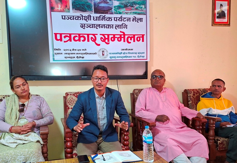 दैलेख – हिन्दै धर्मालम्बी पर्यटकहरुको आकर्षण बढाउन वैशाख १३ देखि १९ गतेसम्म साताव्यापी धार्मिक पर्यटन मेला सञ्चालन हुने भएको छ । पञ्चकोशी विकास संस्था दैलेखले आज शुक्रबार दैलेख सदरमुकाम आयोजना गरेको पत्रकार सम्मेलनमा सो संस्थाले धार्मिक मेला सञ्चालन गर्न लागेको जानकारी दिएको हो ।